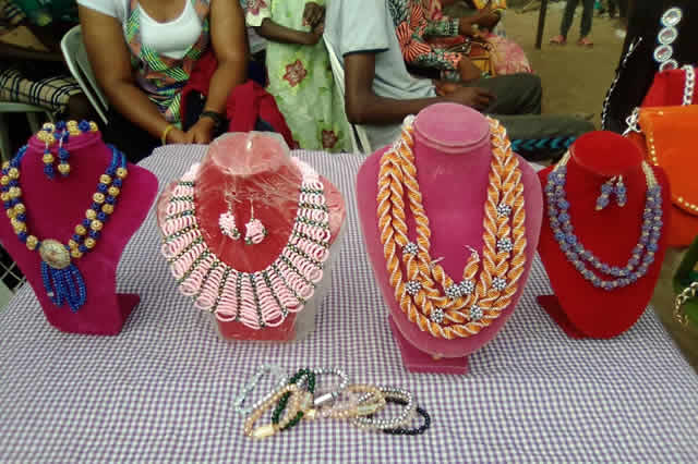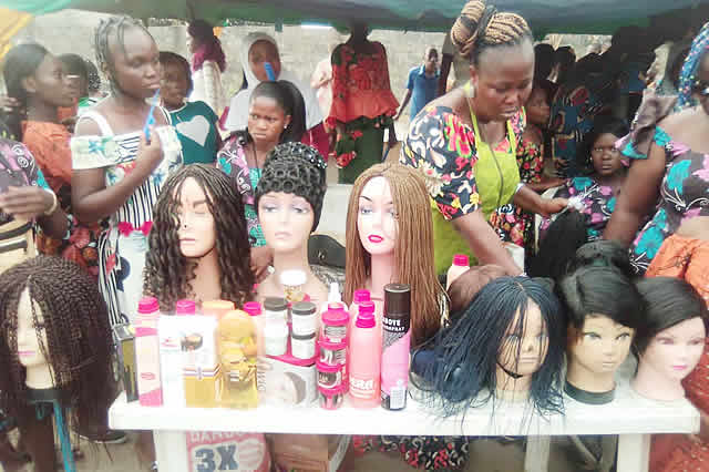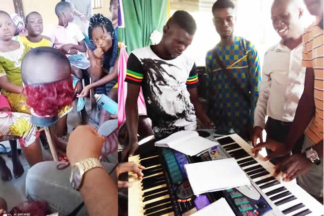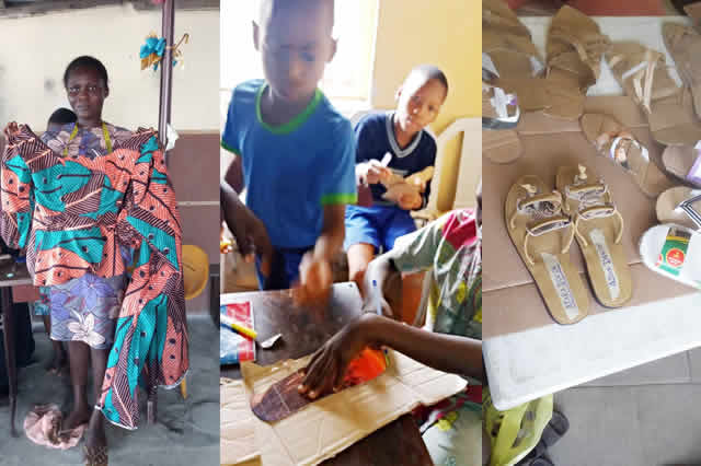 View our activities on event gallery: 1. Children aquiring Barbing skills, 2.Samples of finished products from our chemical class, 3.Hairweaving class, 4.Hairdressing and Music class, 5.Children participation in hair dressing training, 6.Exhibition from decoration class, 7.Exhibition of shoe and decoration from the children, 8.From Decoration and Tailoring department, 9.Hair wigs and bags produced from our classes, 10.Bead samples from our classes, 11.Our shoe making and decoration exibition, 12.One of the award winner from our tailoring class with shoe exibition, 13.Chemical production classes, 14.Shoe practical show, with the chairman inspecting tailoring class, 15.Finished product on shoe and bag making class, 16.Hair creams produced by our chemical class for hairdressing.